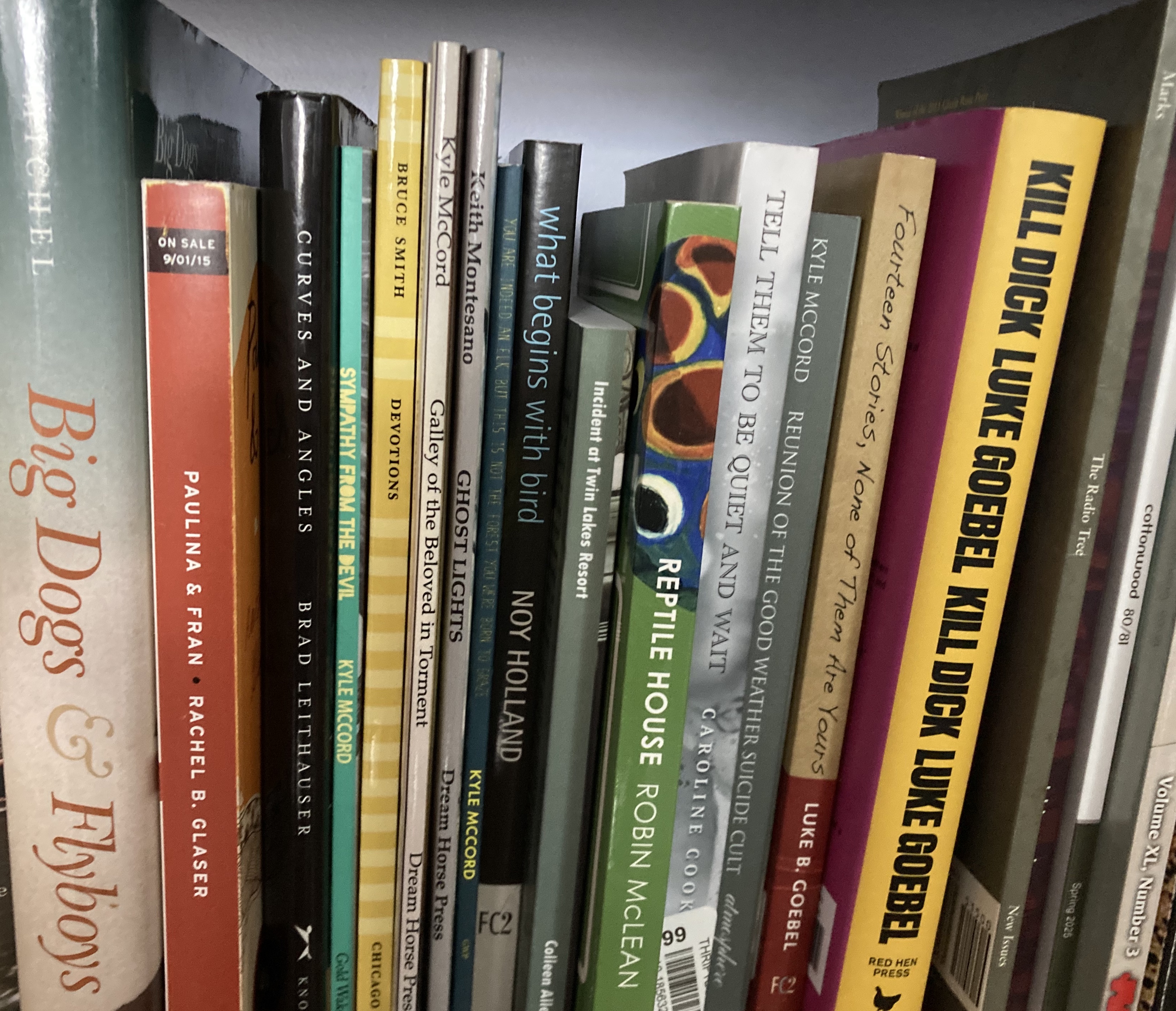 As I was handing out “free coffee” cards for the press I freelance for, I ran into a former MFA colleague. I glanced up, and there he was, sitting at the Red Hen Press booth. It was like I had seen him yesterday, although it had actually been 10+ years. I was a bit flustered in that moment. It took me a while to realize he was promoting (and selling) his new book: Kill Dick. There might have been a time where I would have felt jealous of his accomplishment, but what I felt in this moment was relief—relief that my MFA friends were still out there, producing art, fighting the good fight. Sometimes it feels as if good, literary writing has become obsolete, that the world has moved on to bigger and better things, but seeing my old friend gave me hope for the future and reminded me of the importance of the work we do. I was able to get a signed copy of my friend’s book. I’m going to read it, add it to my shelf, and carry on (or so I hope) doing what I’ve always done—sending my work out into the world, fighting the good fight.